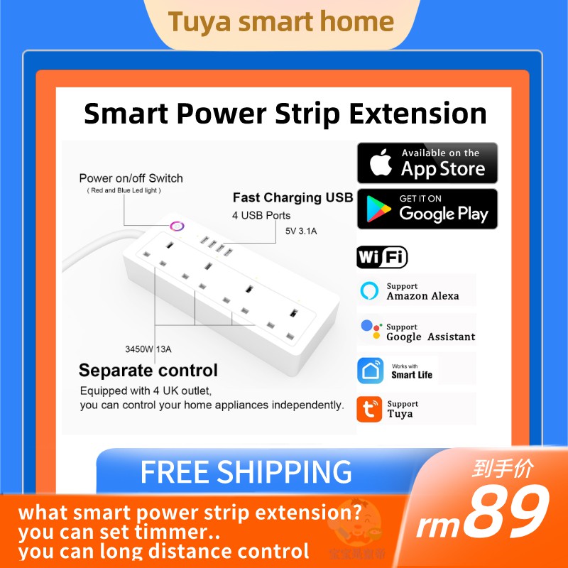 tuya / lifesmart Wifi Smart Power Strip Extension Cord Compatible With